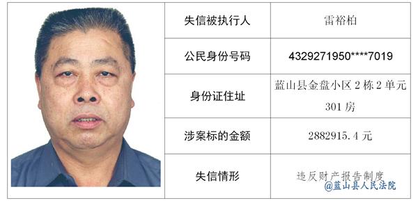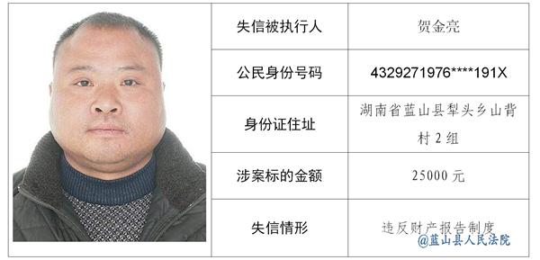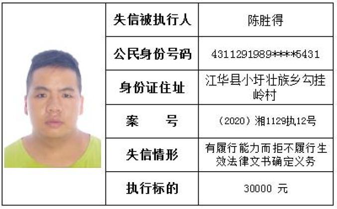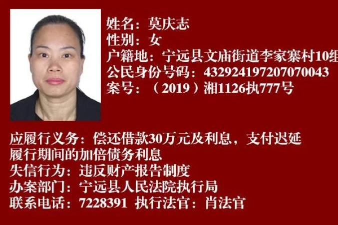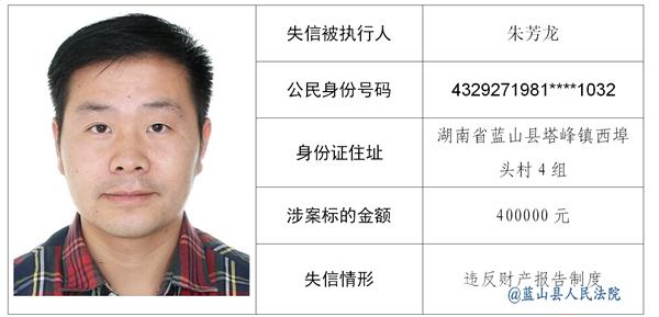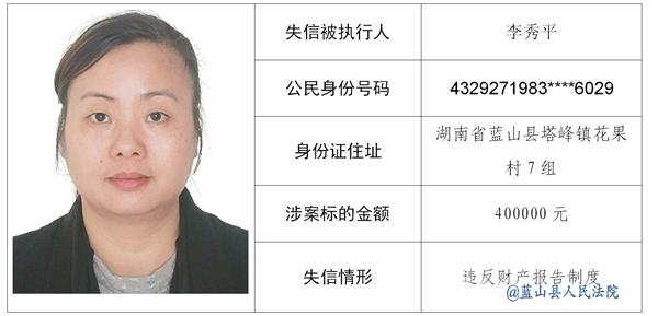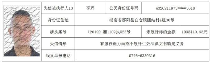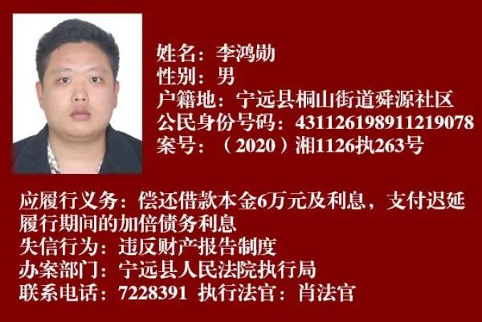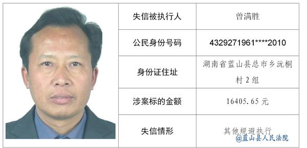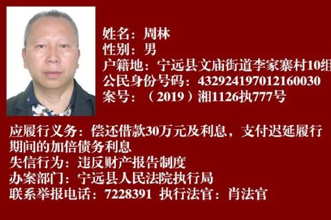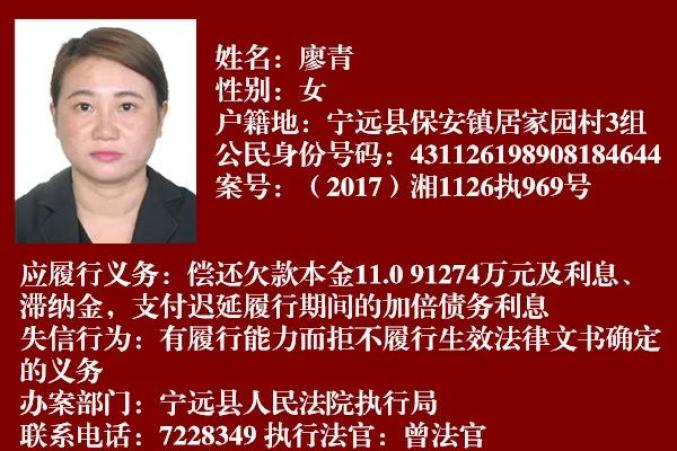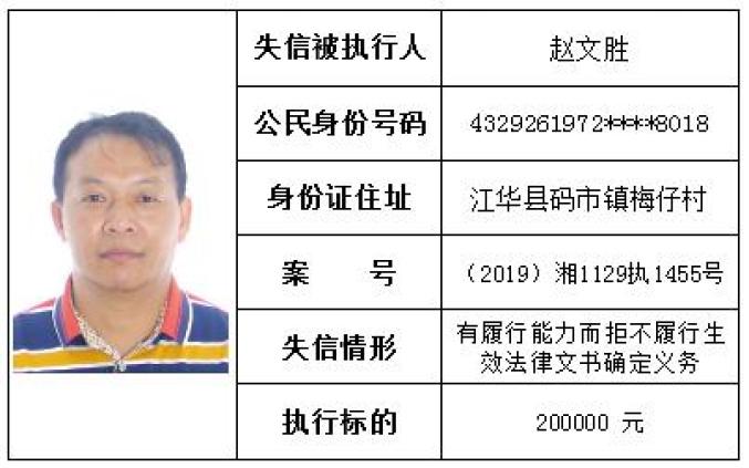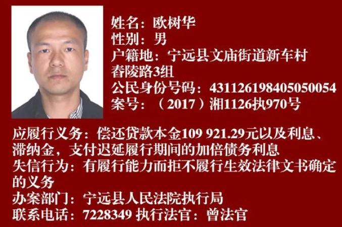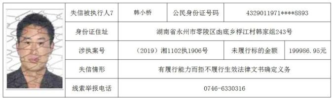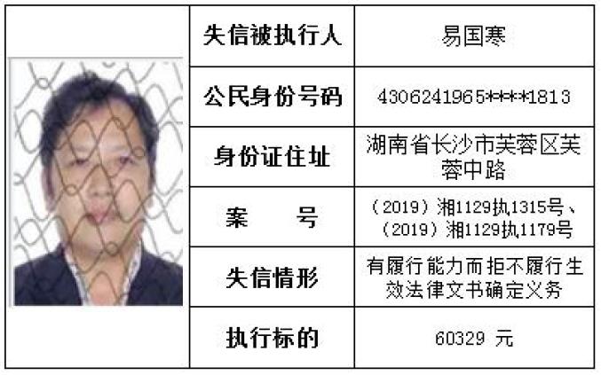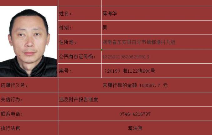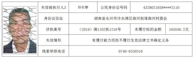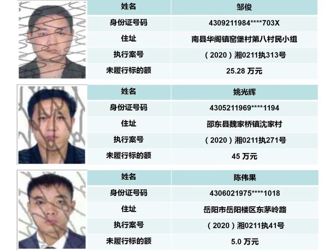 原标题:《湖南最新一批失信被执行人被曝光!有你认识的人吗?》