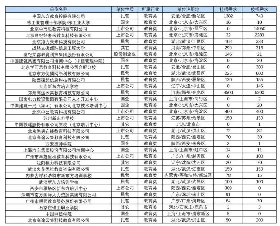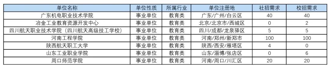 “国聘行动”教育类岗位招聘情况汇总