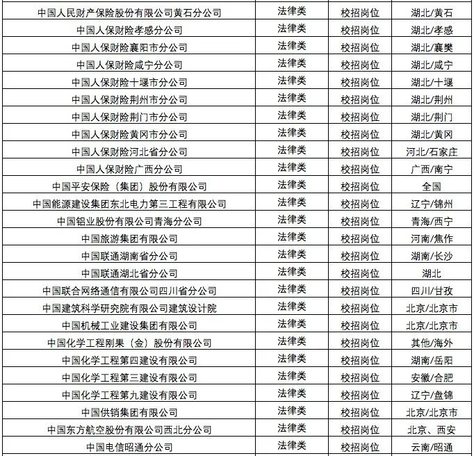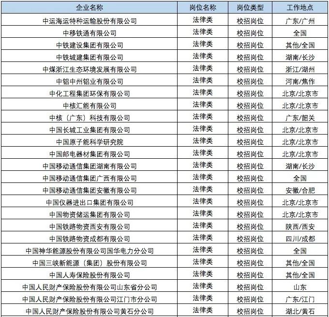 “国聘行动”法律类岗位招聘情况汇总