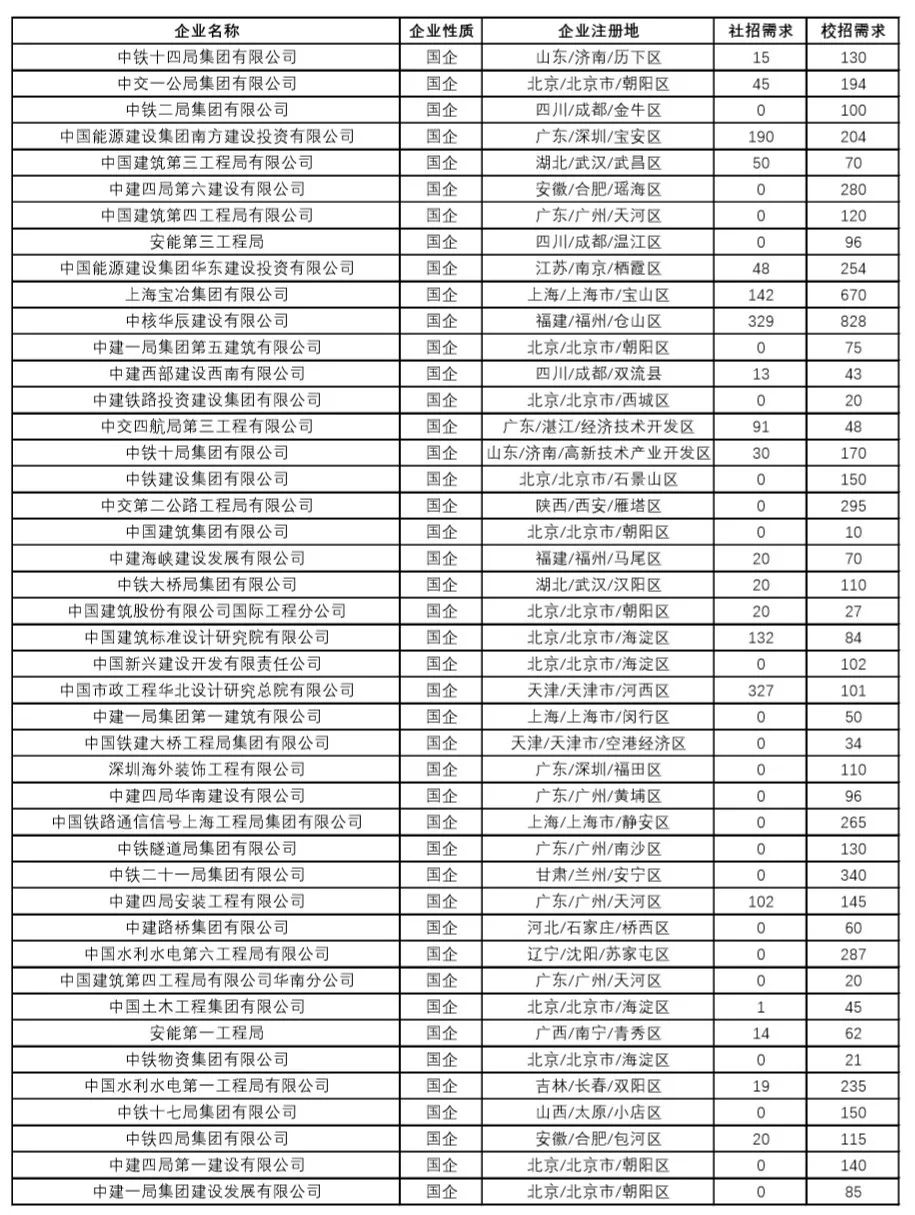 “国聘行动”建筑类央企名企招聘情况汇总