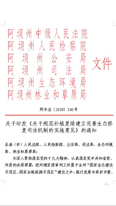 《关于规范补植复绿建立完善生态修复司法机制的实施意见》