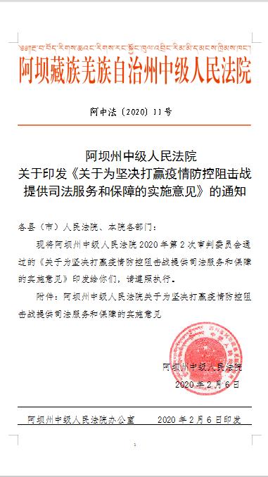 《关于为坚决打赢疫情防控阻击战提供司法服务和保障的实施意见》