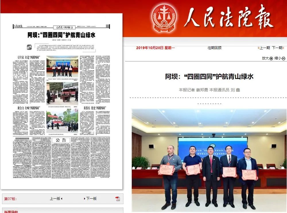 “打造阿坝法院‘四圈四同’生态司法保护品牌,新设九寨沟、黄龙等旅游环保法庭,为我省建成世界重要旅游目的地提供司法服务。”
