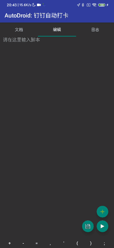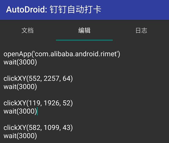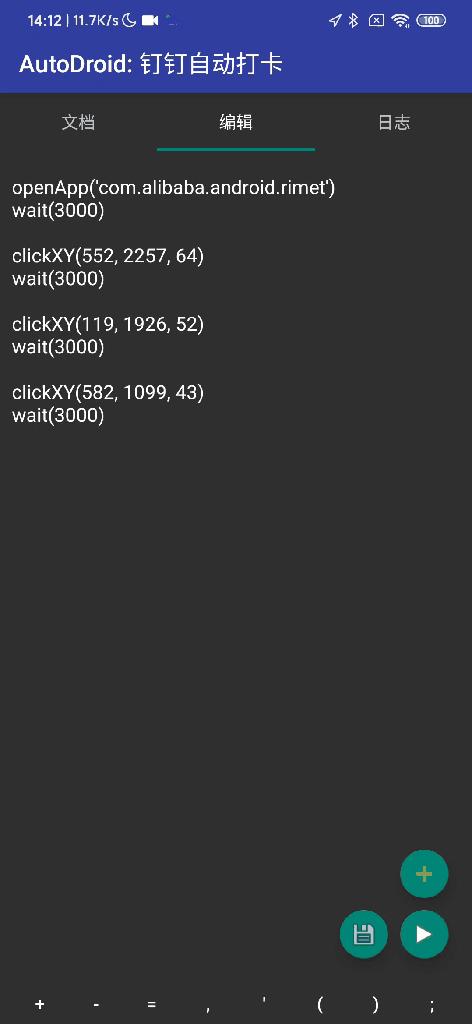 而实现这一效果的前提呢,不需要你的手机经过 Root,只要求你在设置里打开安卓手机自带的无障碍功能,并且同意自动卓的无障碍服务就可以。接下来世超就以钉钉打卡为例,给差友们具体演示下:首先进入到它的脚本编辑模式,手动添加开启钉钉 App 的操作。接着选择录制操作,在钉钉里把我们平时手动打卡的步骤一步步录制下来。录制好后记得在编译界面试着运行下,要是动作错了重新录制或者调整代码就好。这里尽量让动作之间的时间间隔长一些( 前面 wait 里的数字设置得大一些 ),因为页面加载也需要时间。运行测试没问题后,照着样子在前面对它再加个解锁手机的动作,保存退出即可。