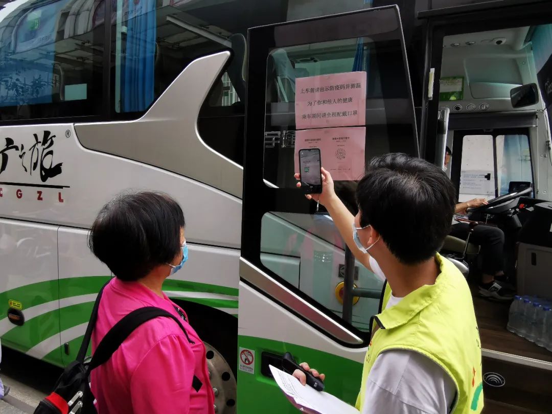“您好,请问您的名字是?先来测一下体温。”今天一早,南小游来到首团集合地现场,25名参与“佛山人游南海”的游客,正有序接受佛山广之旅导游的粤康码复查、测量体温以及使用消毒洗手液等行前卫生防疫准备措施。