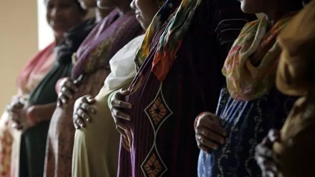 挺着大肚子的印度女性聚集在其中聊天休憩
