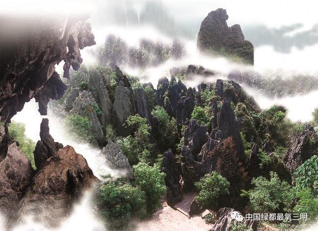 景区由鳞隐石林、洪云山石林、十八洞等景点组成,内耸立着石芽、石锥、石柱、石笋400余座,最高达36米。怪石拟人状物,千姿百态。
