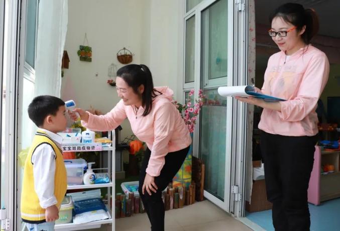 为了严防严控疫情,市委机关幼教集团统一设置了入园“五关”:一是送孩子入园的家长需要在门口复学材料收集处,提交《幼儿健康档案》《幼儿法定监护人承诺书》《幼儿居家隔离体温检测登记表》三份表格给老师进行查验;二是出示安康码;三是按照一米间隔线经过热成像体温检测仪;四是按照七步洗手法进行手部消毒;五是通过消毒垫进行脚消。“五关”全部通过后才能进入幼儿园。