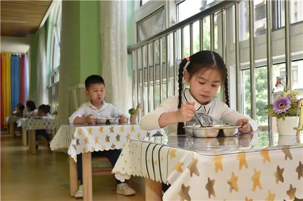 最想念的还有幼儿园的餐点、香喷喷的午饭,孩子们在“七步洗手法”之后,进行“错位就餐”。红玺台总园一直注重幼儿的食品安全管理,对于孩子们的食材来源信息、清洁消毒等方面严格把关,厨房人员始终以责任之心、谨慎之心,做好幼儿的饮食工作。