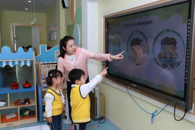 纪家卉告诉我们,开园之前,幼儿园对全体教职工开展了无数次线上培训,如今老师们对于防疫知识早已烂熟于心。“复学工作会议上,我们又集体再度观看了《硬核防控重拳出击——市委机关幼教集团防疫微电影》《市委机关幼教集团防疫知识暨消毒流程》《花开云端抗‘疫’大爱在线》三部防疫专题片,进一步提高了应对突发事件的应急能力,清楚明白自己一天的工作应该如何开展,怎样去帮助入园的孩子们尽快适应回到幼儿园的生活。”