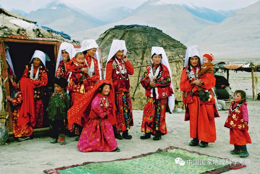 吉尔吉斯族的女人们无一例外地穿着大红衣衫,戴着项链,全身上下饰满了串珠。要想知道当地女子的婚姻状况,不需要开口问,只要看一眼她们的头巾就可以了——少女穿红,妇女戴白。结婚后她们不再远行,只是追赶着日头和行踪不定的水源在帕米尔的各处草场间迁徙,从来没有看见过帕米尔以外的世界。