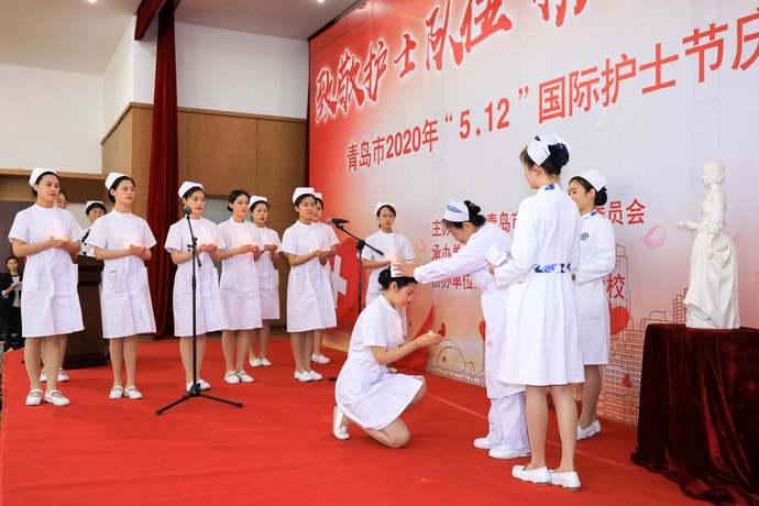 2020年是国际护士和助产士年,也是现代护理事业创始人南丁格尔诞辰200周年。为传承护理匠心与仁爱奉献理念,庆祝大会举行“授帽传烛”仪式。山东省第一位南丁格尔奖章获得者、全国最高龄在岗护士、青岛市第六人民医院护士长李桂美在南丁格尔雕像前为新入职护士授帽,以此增强他们对护理事业的理想与信念,激发强烈的职业共鸣感和价值感。
