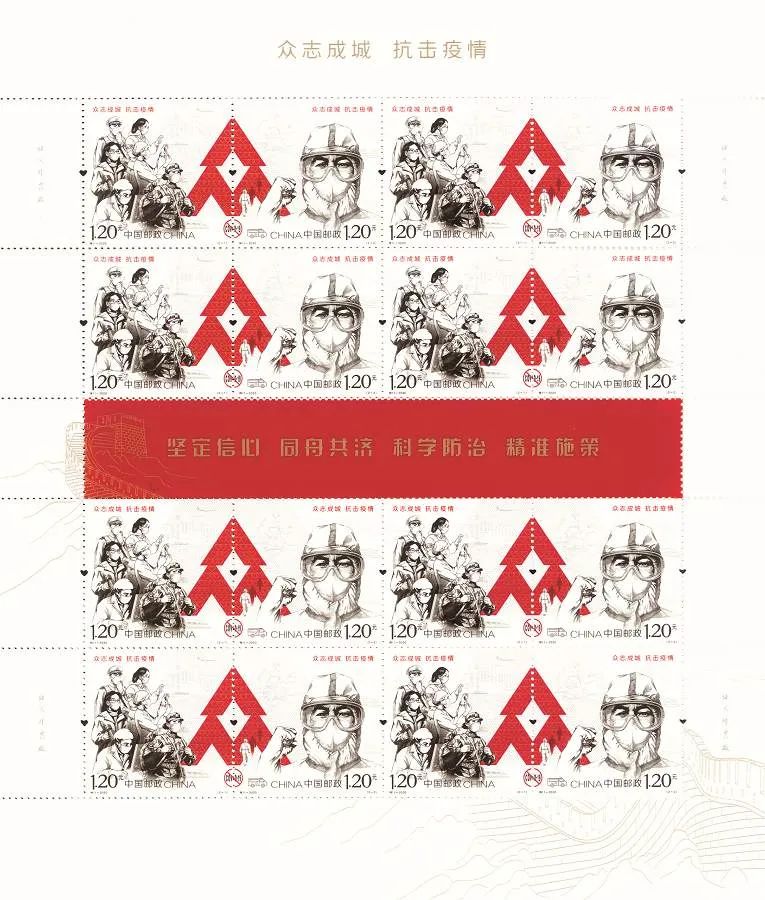 11日,中国邮政特别发行《众志成城 抗击疫情》邮票,该邮票1套2枚,计划发行1450万套。(央视新闻)