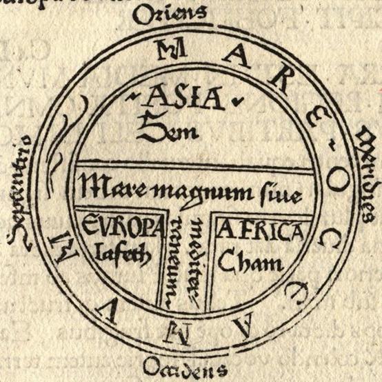 13世纪之前,基督教教义认定世界是一个平坦的圆形,耶路撒冷位于大地的中央,大地四周都是深不见底的海洋。在基督教教义的主导下,当时欧洲人绘制世界地图的主要目的仅仅是为了解说《圣经》中讲述的世界,而不是为了表现真实的地域轮廓。那时,欧洲的世界地图绘制者大多是教堂的神职人员,他们绘制的世界地图通常作为基督教书籍中的插图,或者挂在教堂内作为宗教宣传画。这些地图内容简单,注释稀少,图中描绘的重点是天堂所处的方位和圣地耶路撒冷的所在地。正是由于这些原因,中世纪早期欧洲人绘制的T-O世界地图和贝徒斯地图,总是按照《圣经》中的记载,将伊甸园所在的东方作为地图的上方,以耶路撒冷作为地图的中心。