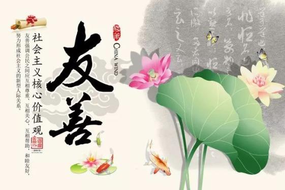 友善即与人为善,要求人们善待亲友、他人、社会、自然。善待亲人以和谐家庭关系,善待朋友以凝结牢固的友谊,善待他人以构建和谐的人际关系,善待自然以形成和谐的自然生态。友善是公民优秀的个人品质,是构建和谐人际关系和社会关系的道德纽带,更是维护健康良好社会秩序的伦理基础。