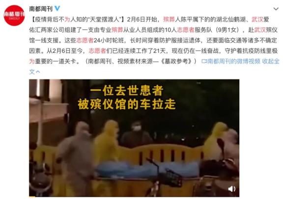 奔赴武汉殡仪馆前去支援。