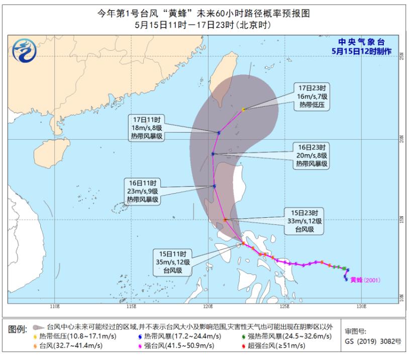 预计受“黄蜂”影响,15日08时到16日08时,南海中东部和东北部的偏东海域、巴士海峡南部的风力将逐渐加大到7-8级,部分海域阵风9-11级。
