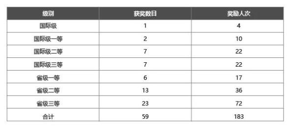 近三年,机电与轨道交通学院共有省A级以上获奖59项,其中国际级1项,国家级16项。以2019年为例: