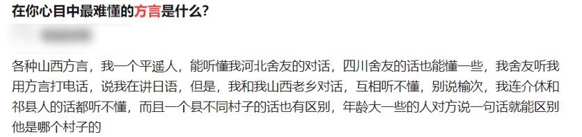 山西人听山西人讲方言,感觉是四川人听不懂福建人讲话的差距,而外乡人听山西人讲话,那就是地球人听不懂外星语的差距了。