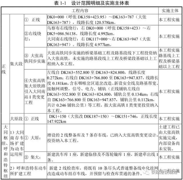 工程全线290.116km,其中新建线路全长268.5km,大同南站至下米庄利用大张高铁段线路长度21.616km,集大段线路长度120.578km,大原段线路长度147.922km,大同南站至下米庄利用大张高铁线路长度21.616km,包含大同、呼和浩特枢纽相关工程。扩建呼和浩特东动车所,大同南存车场扩建为动车运用所,另配套建设枢纽(地区)相关工程。