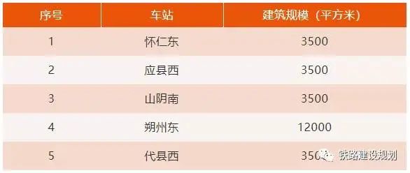 全线共设车站8座,分别为乌兰察布、丰镇西、大同南、怀仁东、应县西、山阴南、朔州东、代县西。车站性质均为客运站。其中乌兰察布站、大同南站、怀仁东站为既有车站,其余车站为新建车站。