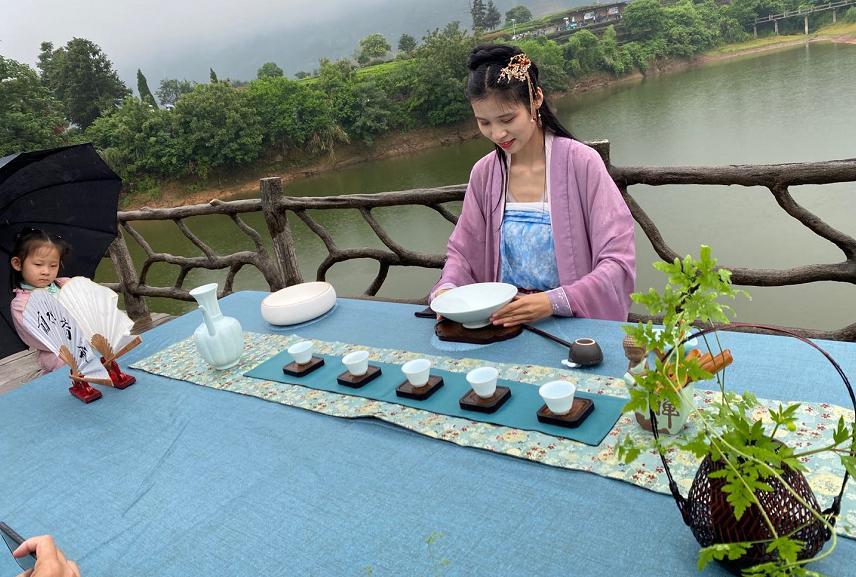 请茶、请水、泡茶、说茶、奉茶、敬茶……一道道流程衔接紧密,将茶文化竞相演绎,作为一名有着数十年种植经验的茶农,来自庆元县龙溪乡龙溪茶叶合作社的吴远付,还是头一次在这样正式的场合里,品尝自己种的茶叶。“特别是敬茶仪式,让我感受到了具有悠久历史的饮茶传统。”他说,作为最偏远乡镇的种茶代表,自己种的茶叶来自高山,茶园方圆60公里内没有工业,是名副其实的健康茶,他期待,主办方通过视频直播的模式,进一步为他的茶叶代言,让龙溪绿茶在全国拥有更大的名气。