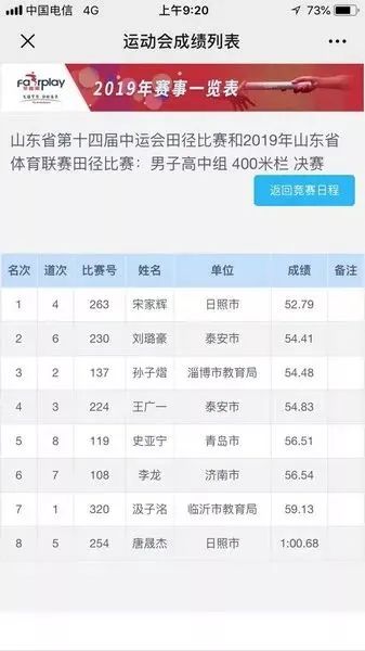 第18世界中学生运动会田径项目选拔赛暨2019年全国中学生田径锦标赛上夺得男子高中组400米栏冠军并以51.52的成绩打破该项中学生全国纪录。山东省中学生第14届运动会上,为日照代表团夺得男子400米栏冠军。全国体育传统校田径总决赛中48.81的成绩夺得男子400米亚军。全国体育传统校田径冠军赛中以51.91的成绩夺得男子400米栏冠军,又以48.53的成绩夺得男子400米冠军。比赛成绩引起了山东教育厅的兴趣,并加入了山东集训队,代表山东省参加2020年的全国第14届学生运动会。优异的成绩受到北大、清华等重点高校青睐,纷纷抛来橄榄枝,都想让他到大学深造,最终他选择了北京大学。原标题:《日照体育才子——宋家辉》