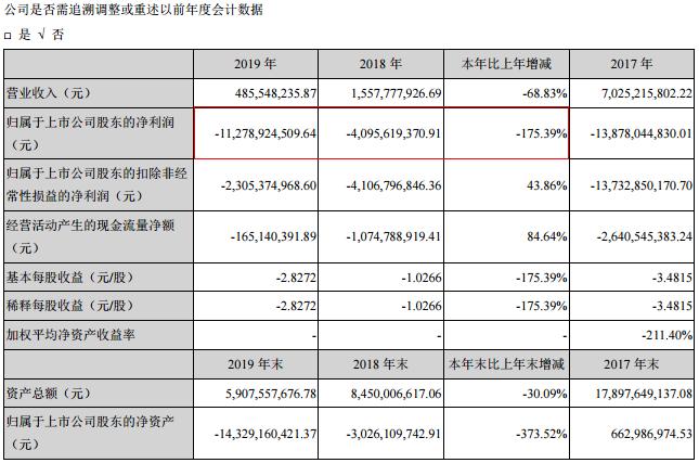 2017年,乐视网的亏损达到了138.78亿元。2019年报,再次巨亏112.8亿元,已是连续三年亏损,近三年净利润累计亏损290亿元左右,并且连续两年资不抵债,2019年末净资产为-143.3亿元。