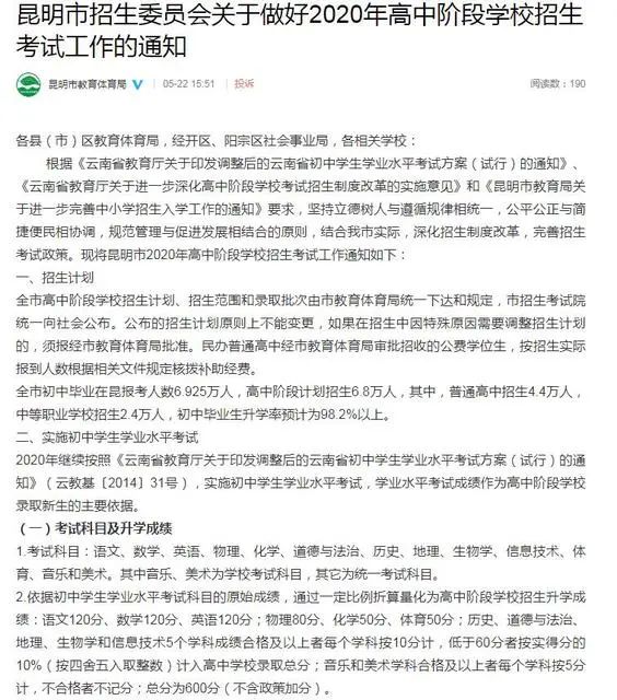 原标题:《昆明发布重磅通知:高中阶段招生、加分政策看这里…》