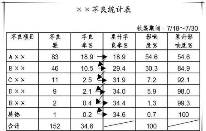掌握问题点:虽然分类很多,但实际上影响较大的只不过是2~3项,因此很容易找出问题出在那里。