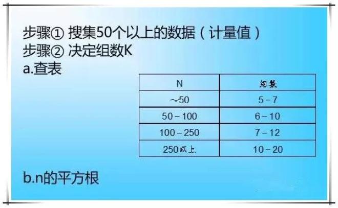 将某期间所收集的计量值数据(如尺寸、重量、硬度……等)经分组整理成次数分配表,并以柱形予以图式化,以掌握这些数据所代表的情报。