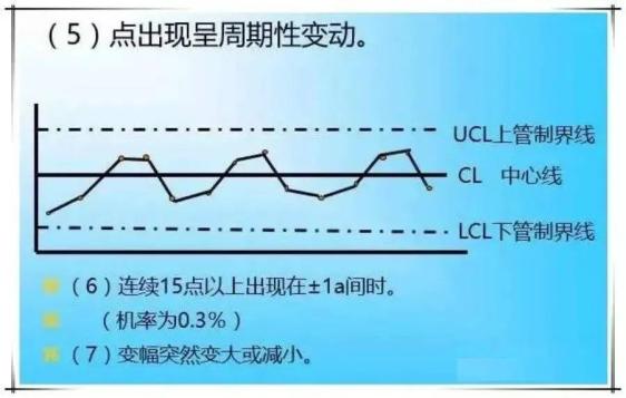 制程满足以上条件,虽可认为制程在管制状态,但不是说点超过了界限外也可以,这些超限的点必定有异常原因的,所以必须追究原因,并将之除去方可。