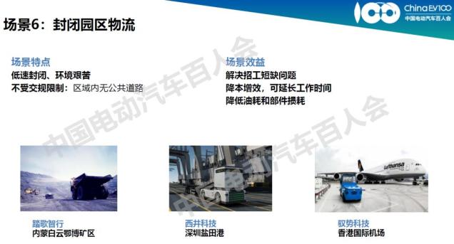 另外一个重要方面是道路法规,这些车辆作为工程设备管理,不需要遵守《道路交通法》,所以法规限制比较少。同时这些车辆往往都是一个主体,比如一个港口,所有车辆都属于港口集团,出现交通事故解决起来比较容易。但是这些封闭场景物流有自己的局限性,第一,市场空间非常有限,我国总共有300多个港口,2000多个矿山,200多个机场,市场占完就完了,没有再进一步扩展的空间。另外,整个技术的可迁移性也比较差,受制于矿区、港口和机场各个场景自身所具有的特殊性,很难复制或者迁移到其他场景,对于公开道路场景来说,它们的技术是难以应用的。