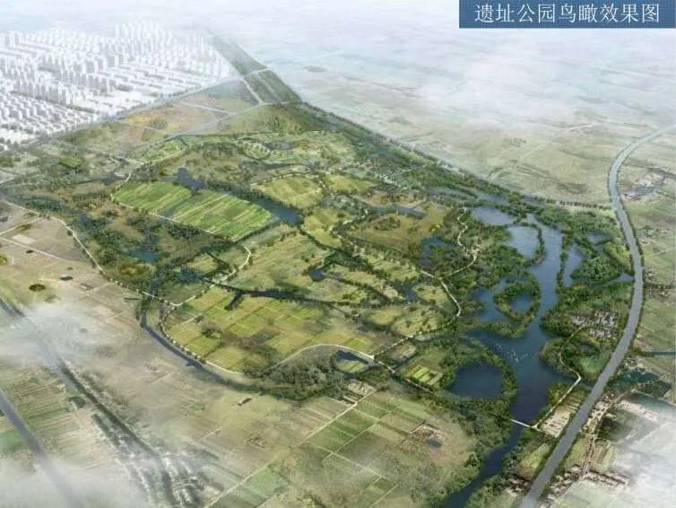 面即以整个建设控制地带为遗址背景环境,由遗址展示区、遗址博物馆展示区、湿地生态展示区、功能服务区和生态农业展示区组成。