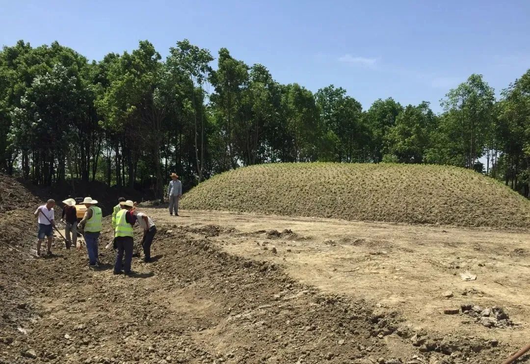 施工人员为了避免破坏农田,都是通过机耕道在土墩墓间穿行。工程方充分考虑到区域内自然地理环境、植物群落特征,尽可能保持现状场地内的地形地貌、植被群落,补种的少量植被也全部使用无锡本地常见绿化品种。
