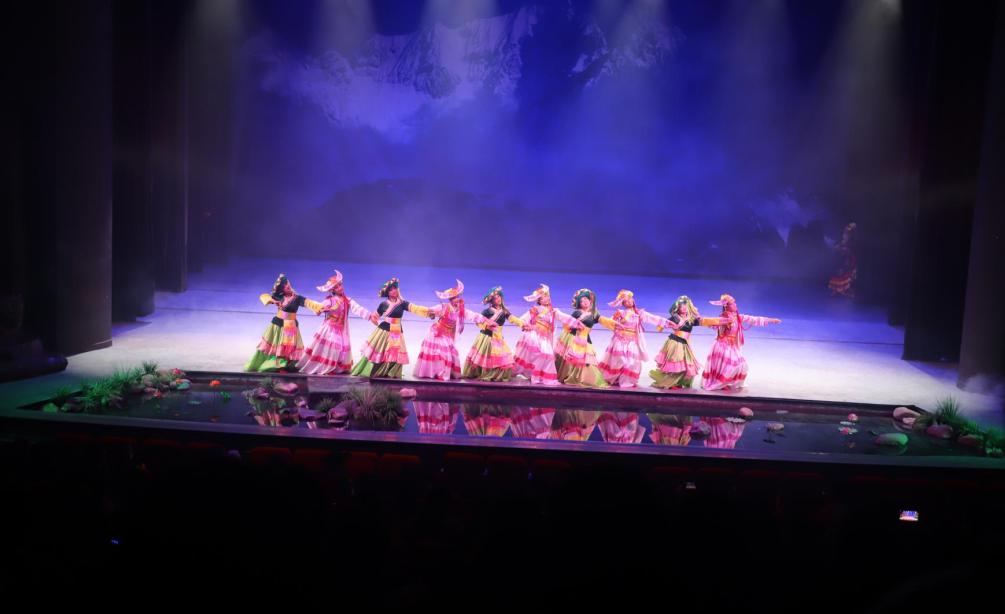 “我很开心,也很激动,台下坐的都是医护人员和他们的家属,心里也很感恩。”和振琴在丽江金沙第三章节“情”字篇里,“找姑娘”的部分中扮演了姑娘的角色,火红的裙装穿梭于舞台,各民族的乐器随着小伙的到来轮番上场。阔别4个月的舞台,让和振琴心里充满感恩。