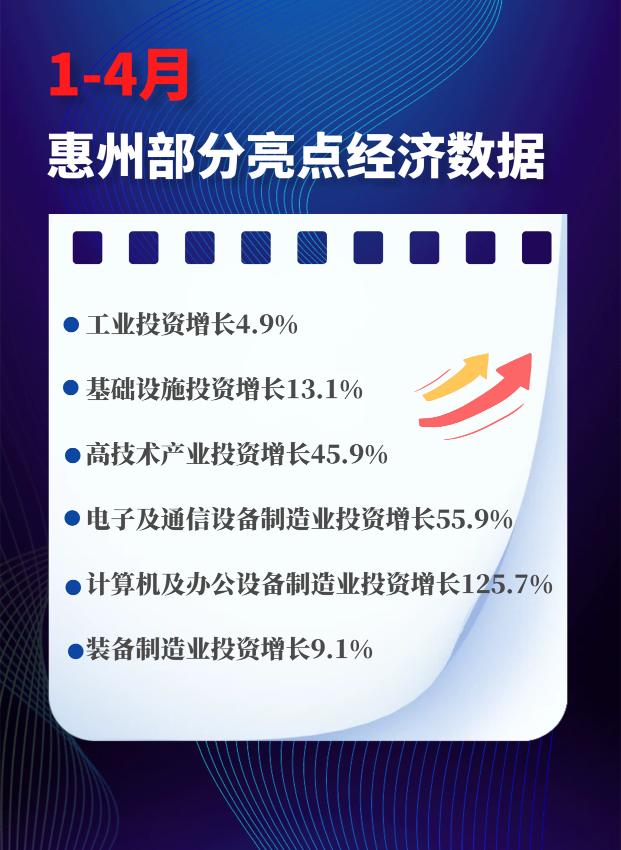 惠州市统计局的数据显示,惠州固定资产投资恢复良好,工业投资、基础设施投资实现正增长,高技术产业投资增长较快。