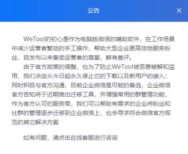 但如果微信真的是想让更多人来用企业微信而封掉 WeTool 的话,那为啥不早点儿把 WeTool 封掉,非要等到现在呢?