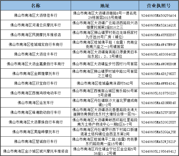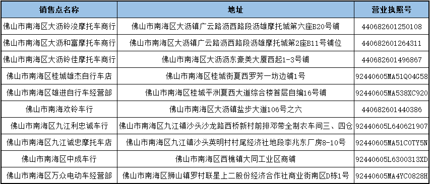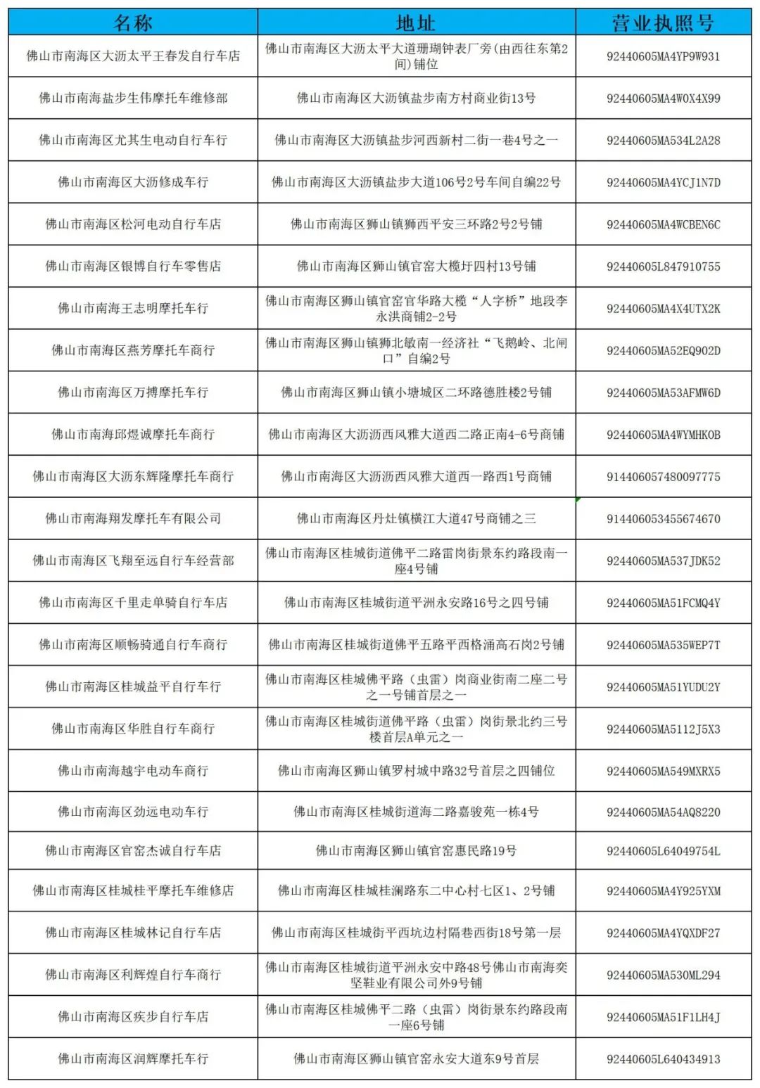 截至目前,佛山交警已公布了三批电动自行车带牌销售点,南海全区共有50家。