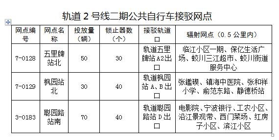 新增公共自行车网点3个(五里牌站北侧、枫园站北侧和聪园路站南侧)