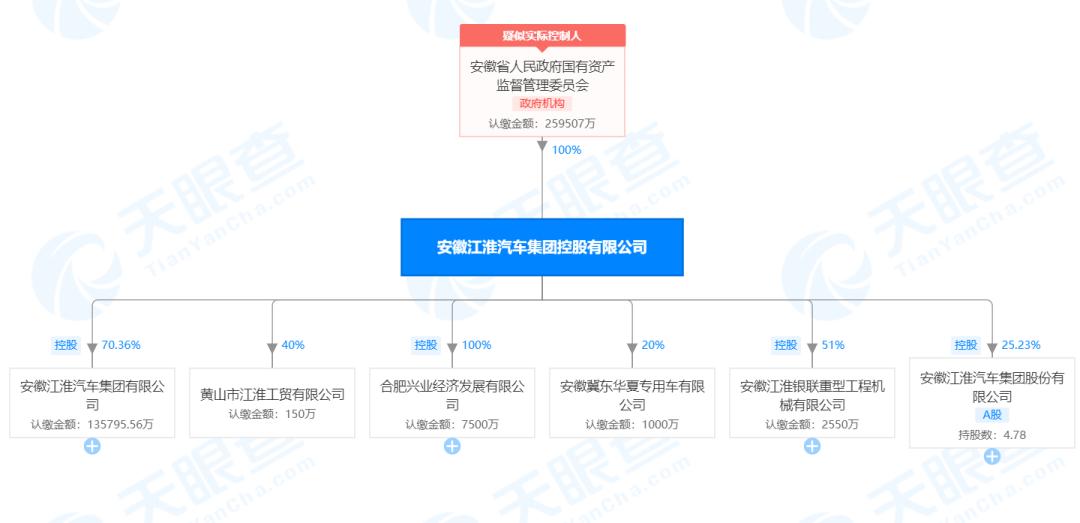 来梳理一下上述公司之间复杂的关系:在5月29日的交易之前,江汽控股是安徽省国资委全资子公司,同时也是上市公司江淮汽车的最大股东,持有后者25.23%的股份。大众中国则是德国大众汽车股份有限公司在中国设立的全资控股公司,主要负责投资、科研和咨询业务。