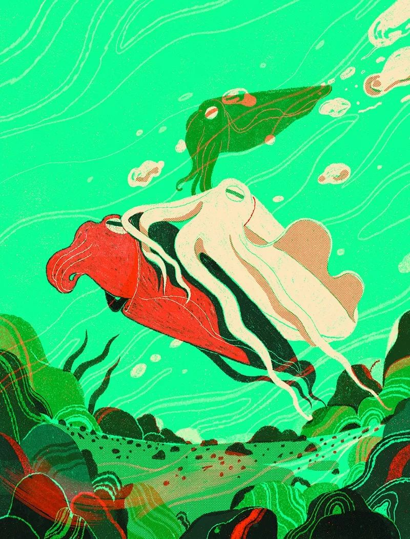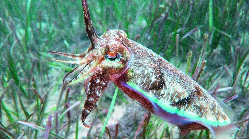 澳大利亚有一种“悲伤墨鱼”,除了伪装,还据有其他欺骗行为。当这种雄性墨鱼求偶遇到一个竞争对手时,前者会游到求偶对象和雄性竞争者之间,向雌性发出求偶信号,并伪装成雌性墨鱼的体态,让竞争者放下戒备,认为这是另一个可追求的雌性。简直聪明又狡猾!