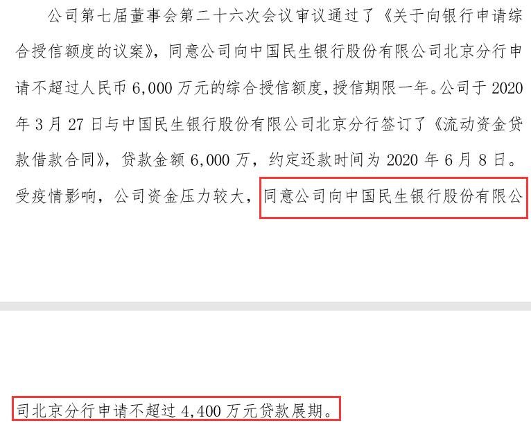 5月30日,在北京文化一连串的公告中,公司还对两家银行的贷款进行了展期,原因是受疫情影响,公司的资金压力较大。