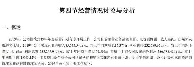 其中世纪伙伴的减值原因是2019年广电总局对“翻拍剧”、“宫斗剧”的严格限制,导致公司经营困难,计提商誉减值8.24亿。