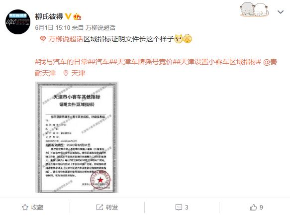6月1日起市民可直接登录天津市小客车调控官方网站,或持有效身份证件,到各区小客车调控服务窗口申领区域指标。
