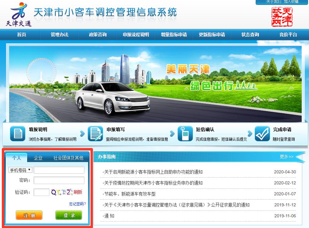 登录天津市小客车调控管理信息系统网站:http://xkctk.jtys.tj.gov.cn
