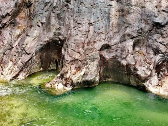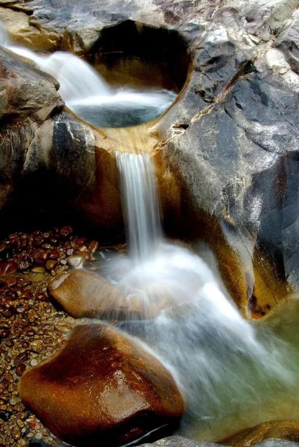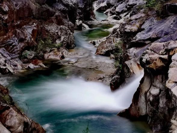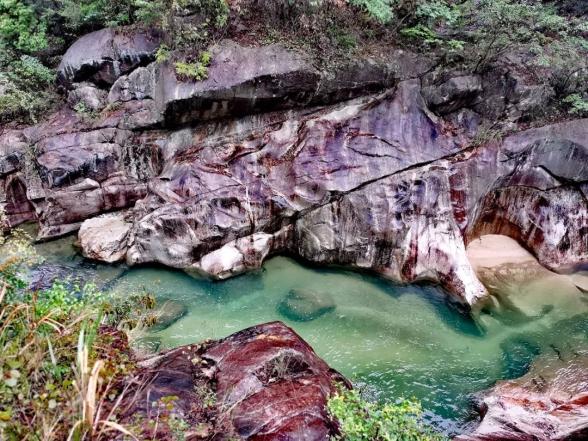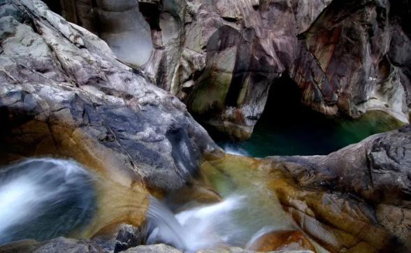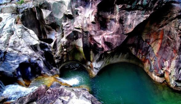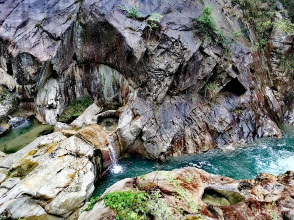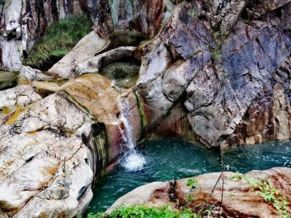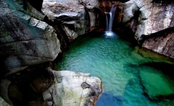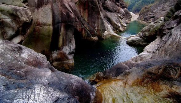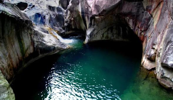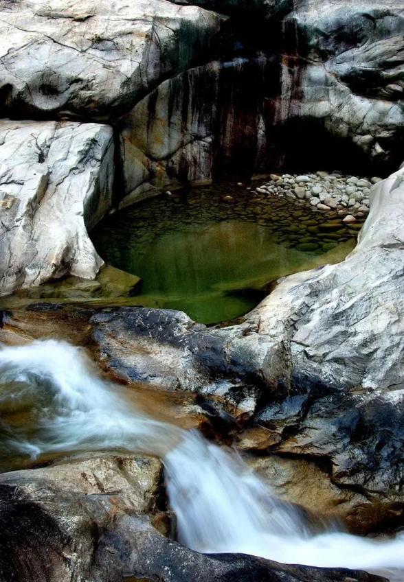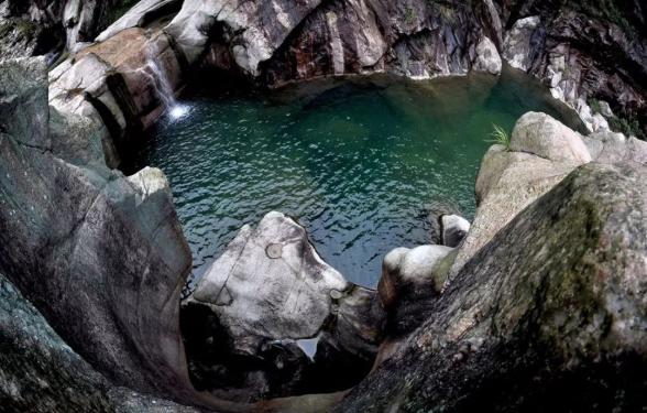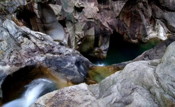 燕子岩,长约12.5公里,峡谷峭壁深壑,涧谷幽长,山高林深,雄奇险峻。在这里,不仅有清澈如镜的溪水,也有翡翠般的水潭,更有鬼斧神工的“魔坑”,数千米的河床上遍布着如同古代用于舂米的石臼。