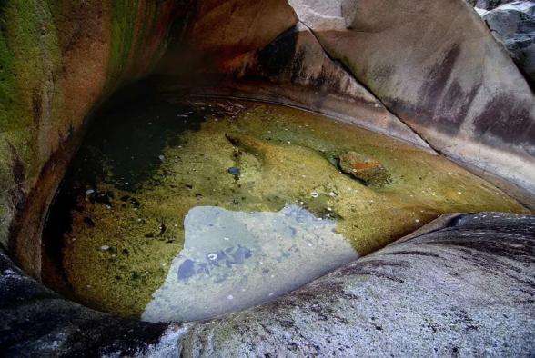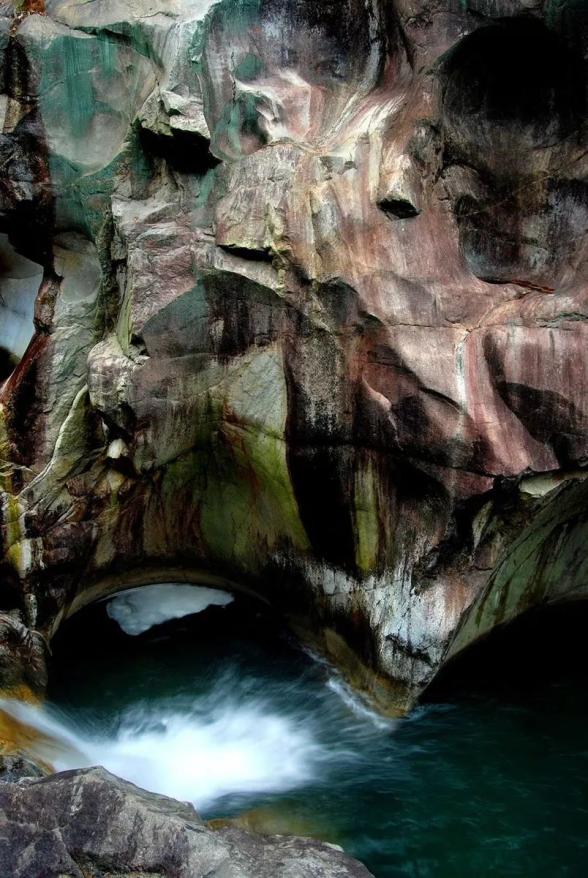 燕子岩峡谷内的冰臼,直径大的有4米多,小的仅有几厘米。这些冰臼色彩斑斓、形态各异,如线条粗犷的天然雕像,与周边的岩石融为一体,景色独特,蔚为壮观。