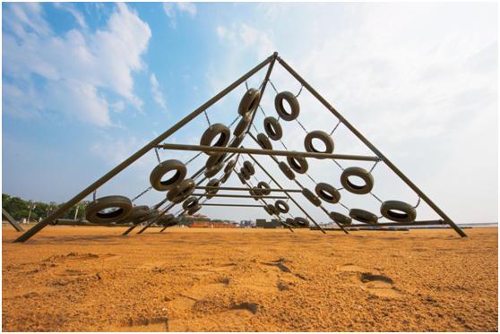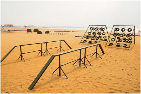 移动独木桥,翻山越岭,轮胎阵,地桩网,矮墙,2米障碍板……在“天水之眼”东侧的“沙海点兵”景点,提供了丰富的、对少儿具有挑战性的拓展训练设施。这里模仿部队训练,布置了多件可以对少儿进行单兵训练、也可以进行团队合作训练的器械,在锻炼青少年四肢协调能力和攀爬能力的同时,也激发受训人员的毅力和自信心、生存能力和适应能力。