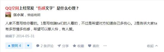 在这样的青春疼痛文学滋养下,在QQ空间发伤感文字,就成了抒发伤春悲秋的最佳场所。